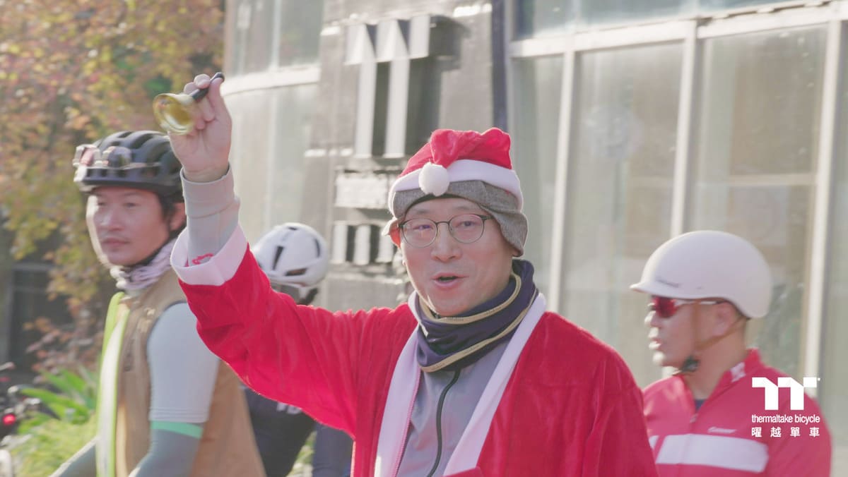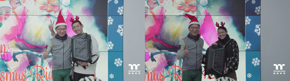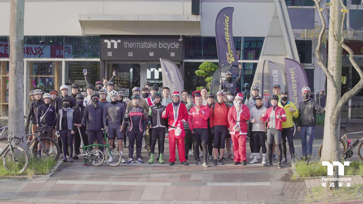早晨在曜越單車旗艦館進行集合,出發前先來張溫馨的大合照,這時候竟然出現聖誕老公公跟大家一起合照!真是太應景了~之後聖誕老公公響起鈴鐺號召各位車友出發囉!